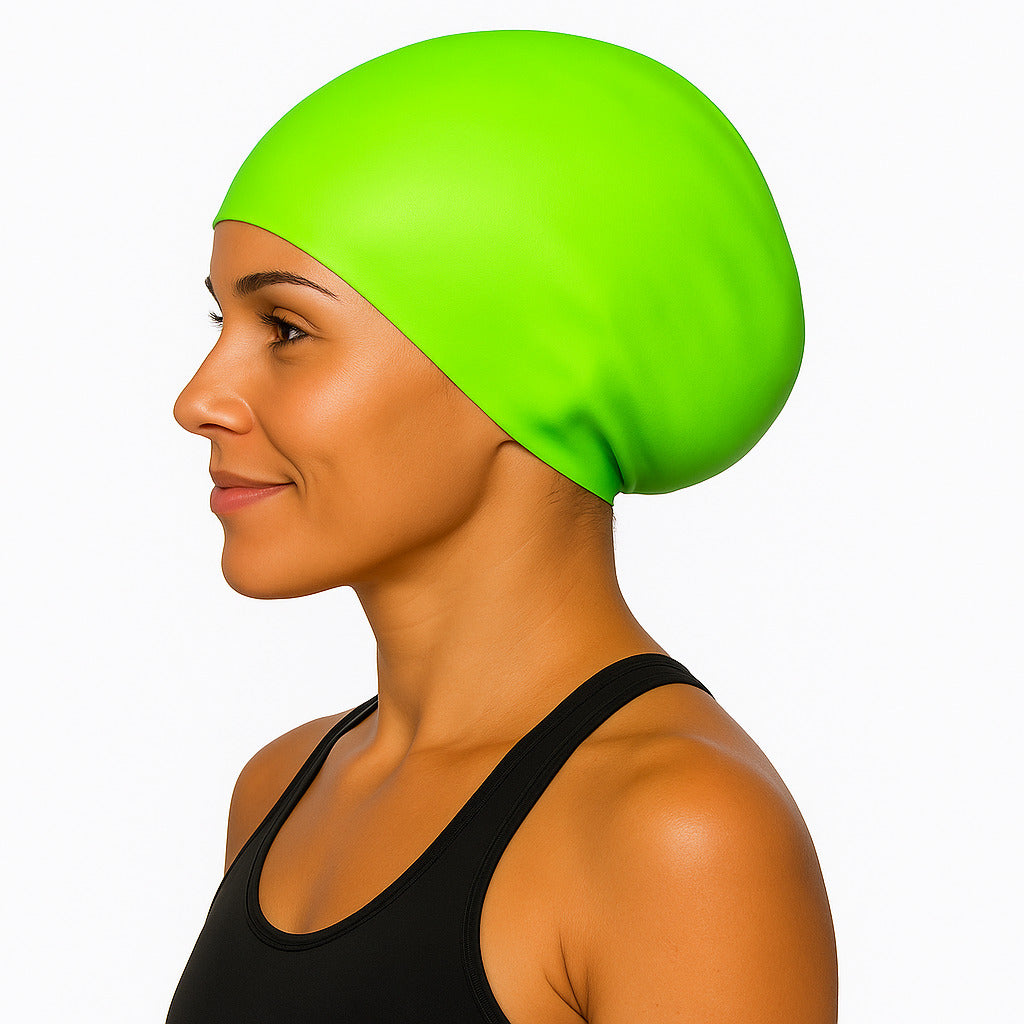 Cască de înot din silicon, copii 7+ ani / adulti, verde deschis - pentru par lung