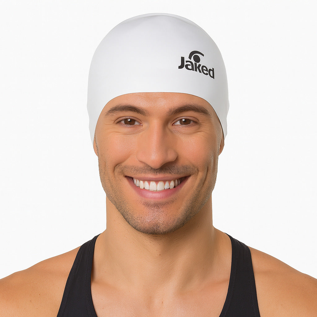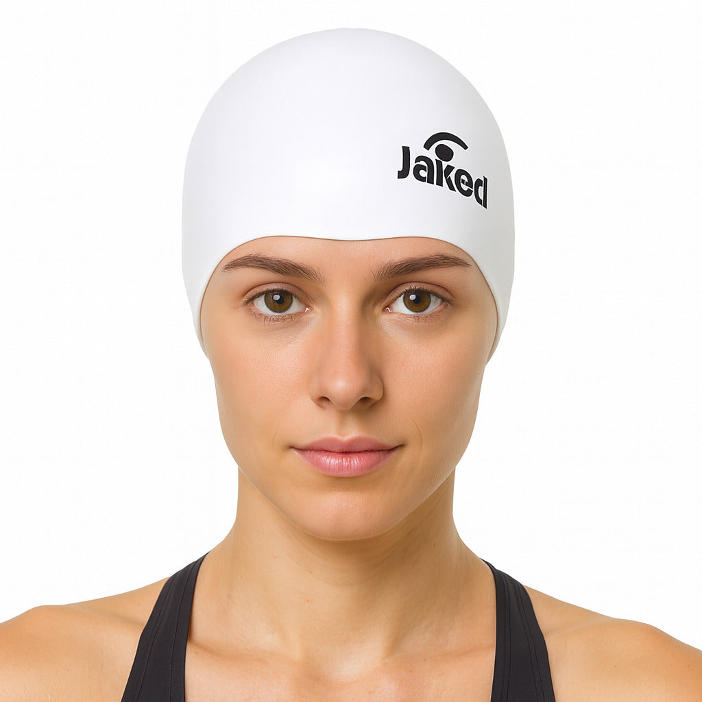 Cască de înot din silicon, copii 7+ ani / adulti, alb - Jaked Basic