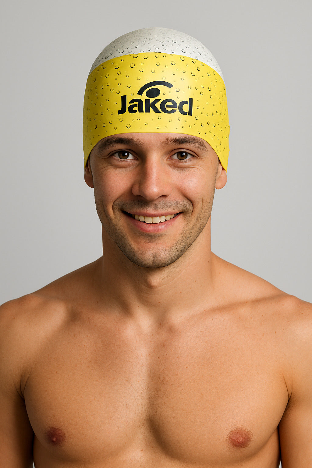 Casca de inot Jaked Beer, galbena, este un accesoriu pentru adulti, barbati si femei. Aceasta are un aspect amuzant, gratie aspectului de bere, cu spuma si bulele care dau o imagine dinamica si amuzanta castii. Aceasta este confectionata din silicon 100%, material care prin elasticitate asigura o buna purtare si fixare pe cap, fiind in acelasi timp rezistenta la apa cu clor din bazin.