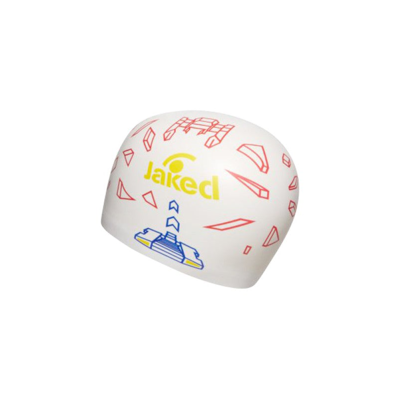 Casca de inot din silicon INVADER colorata, cu o imprimare originala si logo-ul Jaked pe fata.