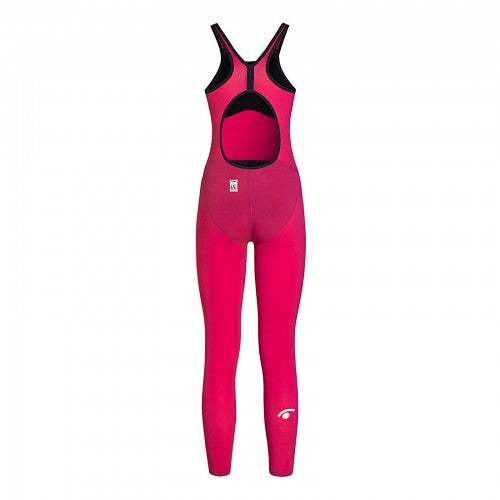 Costum de baie JKATANA OPEN WATER pentru femei, proiectat special pentru a oferi confortul și durabilitatea necesare pentru cele mai lungi și cele mai extreme curse. Produsul comprimă în mod uniform, menținând flotabilitatea în apă și facilitând inaintarea. Țesătura extra-ușoară este compusă din module bi-elastice HT cu etanșare mecanică de inalta calitate. Cusăturile sunt înlocuite cu etanșare termică, care reduce drastic coeficienții de frecare din apă și orice disconfort din frecare. Tratamentul exclusiv AcquaSuAcqua permite crearea unei pelicule protectoare realizate din molecule de apă care nu penetrează țesătura, dar care ajută elementul să alunece mai eficient în apa. Costumul are bretele incrucisate.