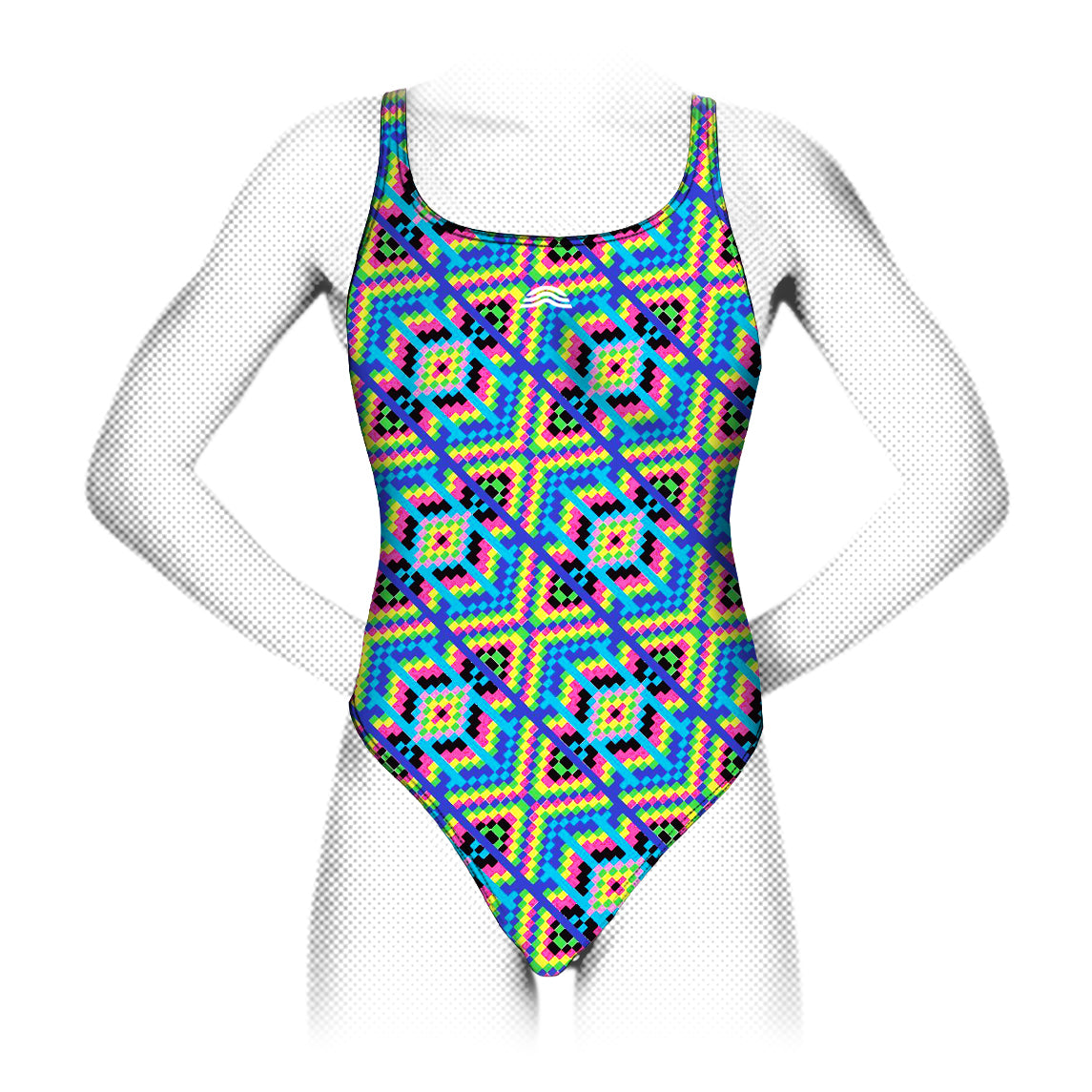 • Design atractiv și modern: Imprimeul original și culorile vii te vor face remarcată oriunde alegi să înoți.