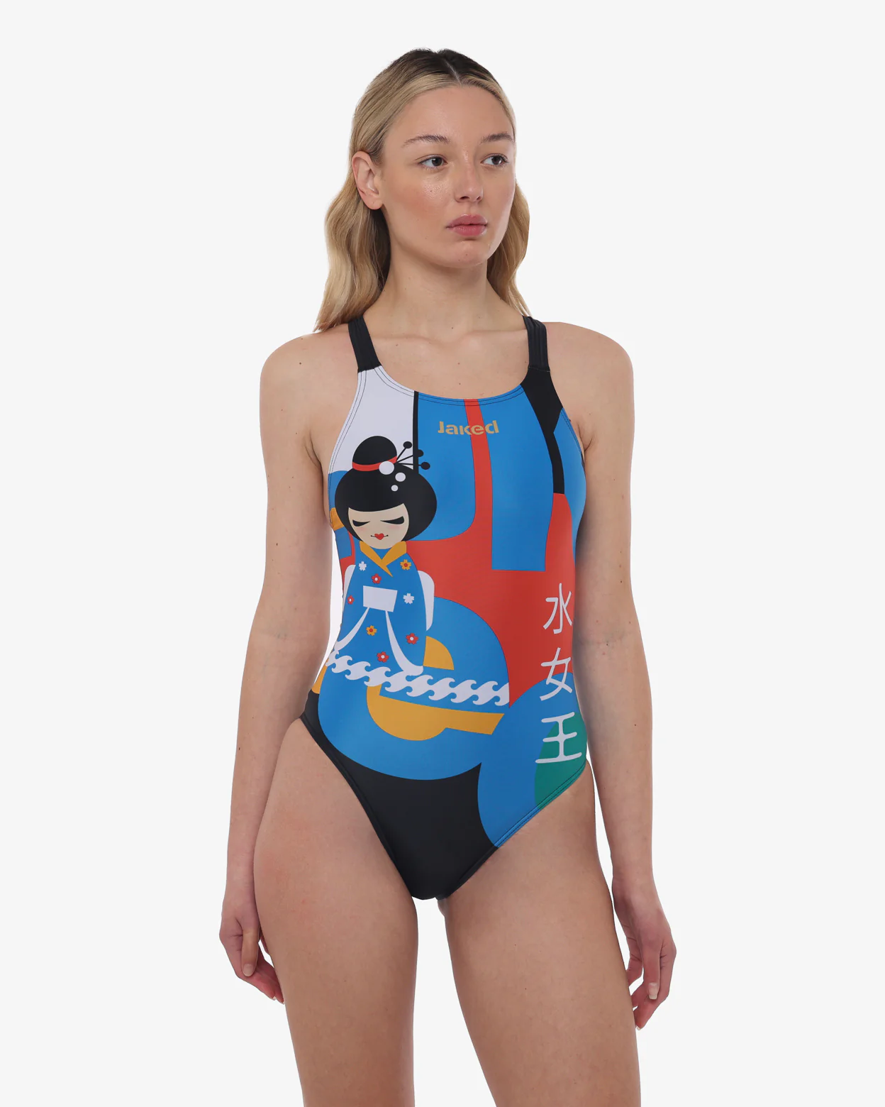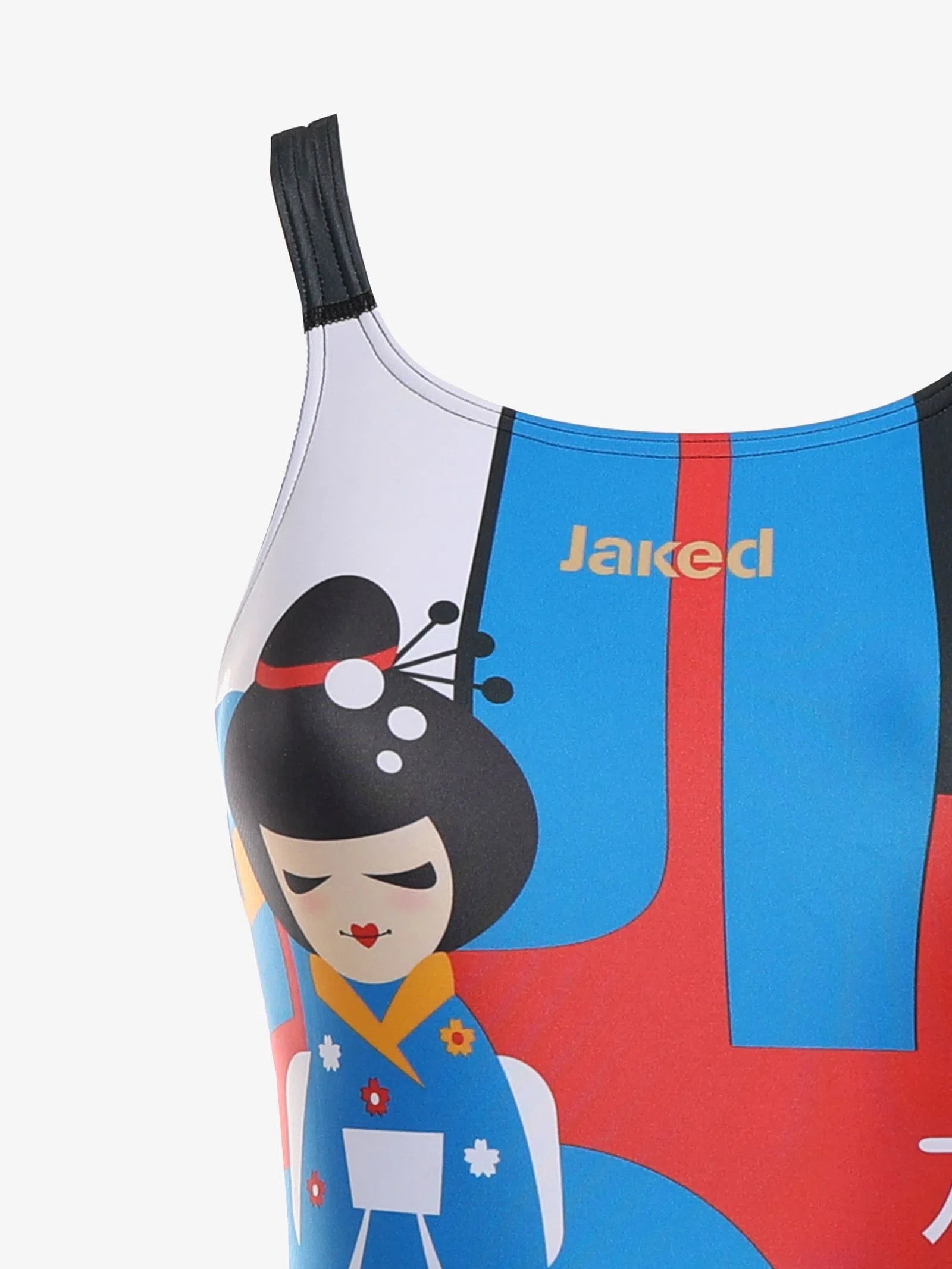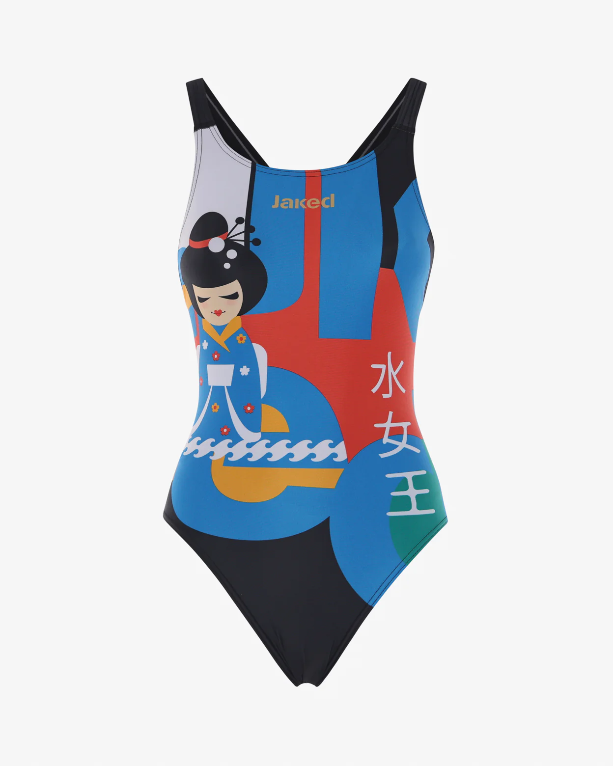Descoperă costumul de înot pentru damă Jaked Queen, un model vibrant și plin de personalitate, perfect pentru femeile care își doresc să iasă în evidență atât în bazin, cât și pe plajă. Designul său unic, inspirat de cultura japoneză, îmbină culorile îndrăznețe și motivele tradiționale pentru a crea un look spectaculos.