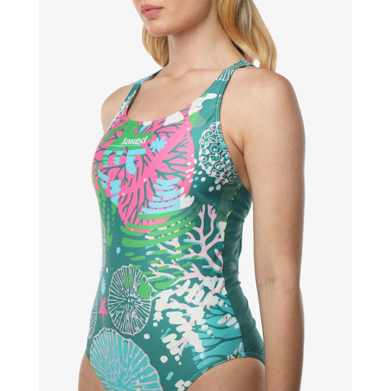 Redescoperă plăcerea înotului cu costumul Jaked Save the Ocean, un model conceput special pentru femeile care își doresc să se simtă bine și să arate impecabil atât în piscină, cât și în timpul antrenamentelor. Designul vibrant, inspirat de frumusețea naturii marine, combină culori vii și motive tropicale, subliniind atenția ta pentru detalii și stil.