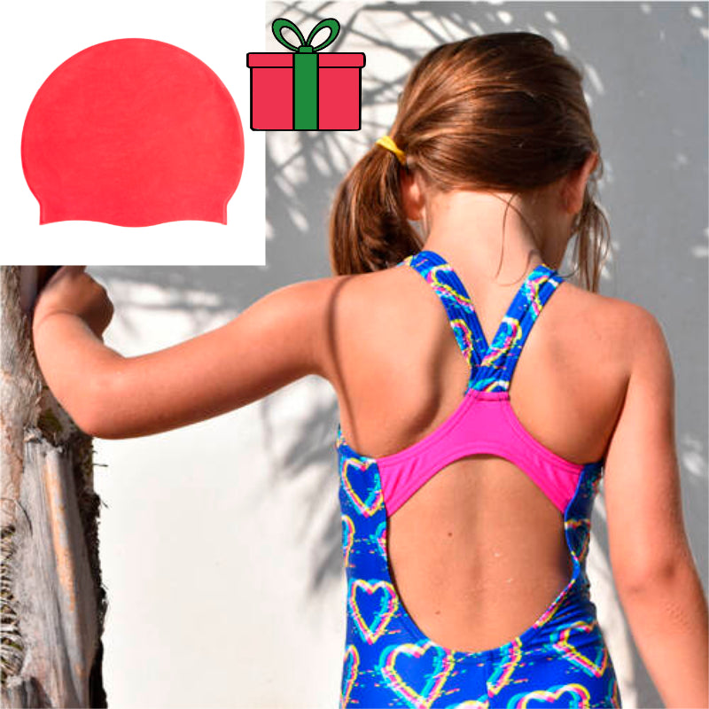 Costum de înot pentru fete Aqaurapid LOVY + cadou: o cască de înot!