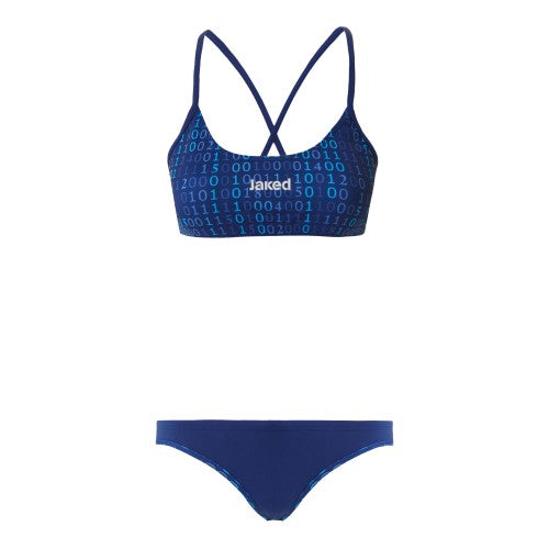 Descoperă costumul de înot Jaked Tecnico Code X, un model creat special pentru performanță, confort și stil inedit! Inspirat de universul digital, designul său modern, cu un model de cod binar în nuanțe de albastru intens, te va face să te simți puternică și încrezătoare în orice sesiune de antrenament sau competiție.