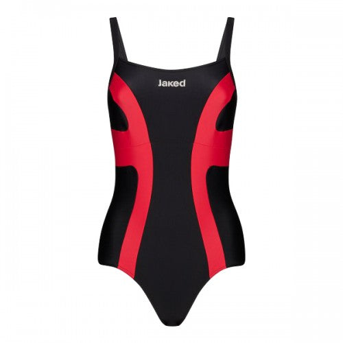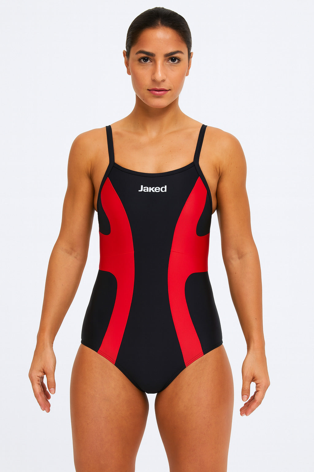 Descoperă costumul de înot Jaked Lady Gemini, creat special pentru femeile care apreciază stilul, confortul și performanța în timpul antrenamentelor sau competițiilor. Designul său modern, în nuanțe de negru și roșu, îmbină perfect funcționalitatea cu un aspect estetic deosebit, oferindu-ți încrederea de care ai nevoie în orice moment petrecut în apă.