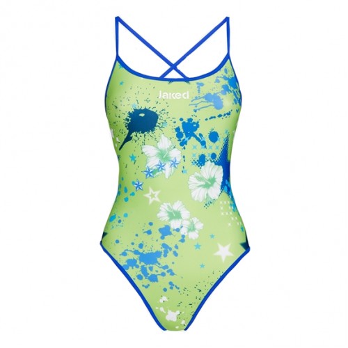 Fii strălucitoare în apă cu Jaked Party, un costum de înot conceput special pentru femeile active și pasionate de înot. Designul vibrant, cu motive florale și accente dinamice, atrage toate privirile, oferindu-ți un stil unic în bazin sau la mare.