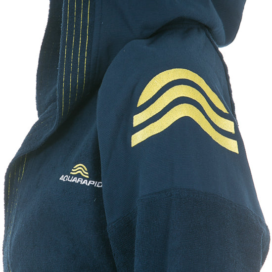Pentru antrenamentele de la piscina ai nevoie de un halat de baie confortabil si eficient asa cum este acest model de la Aquarapid. Realizat din Microterry (270g /m2) cu fire de calitate premium, filate, din fibra de bumbac asigura un confort maxim si are o capacitate de absorbtie impresionanta. Pe langa aceste calitati, materialul are o greutate redusa si un aspect foarte placut. Avand si o capacitate de uscare rapida, vei putea simti confortul termic inca din momentul in care vei iesi din piscina si vei imbraca halatul. Acest produs este practic si confortabil, este compact si poate sa incapa eficient in geanta de plaja.