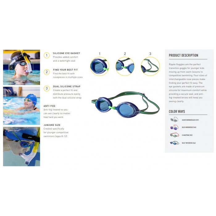 • DIMENSIUNE JUNIOR: Creată special pentru înotătorii de competiție mai tineri (vârste 6-12)