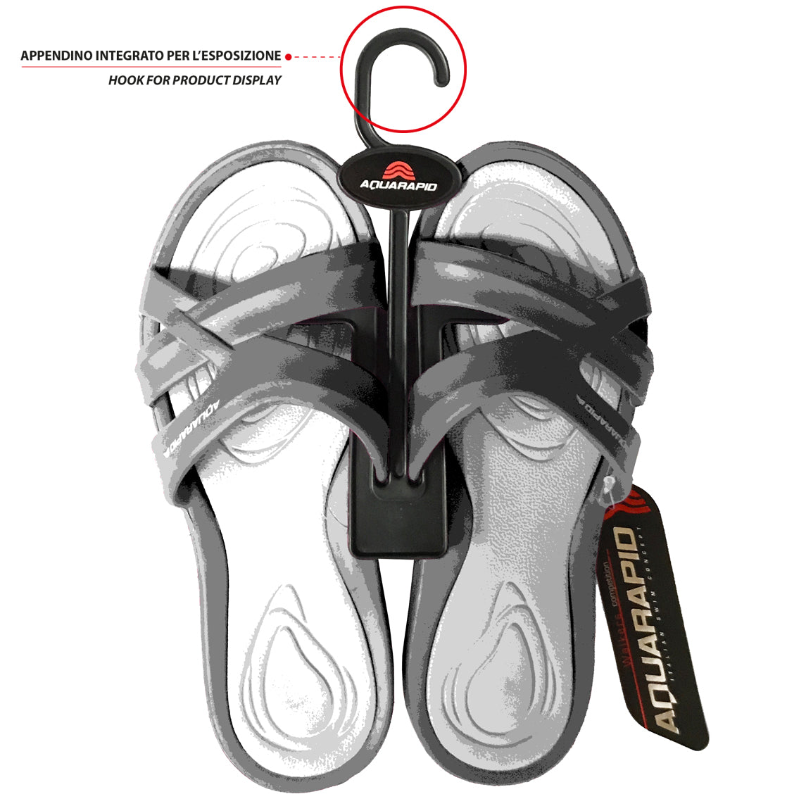 Incaltamintea pentru piscina si plaja de la Aquarapid pentru femei este confortabila si in tendinte. Realizata din spuma poliuretanica EVA LIGHT asigura toate avantajele oferite de o incaltaminte de calitate si rezistenta. Tocul ridicat asigura o postura corecta a corpului, asigurand confort coloanei vertebrale. Are capacitatea de a se usca rapid si ofera o aderenta excelenta pe suprafetele umede.